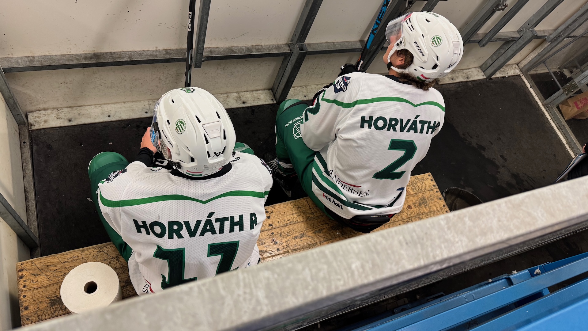 #10 Csata Sebestyén, #77 Sipák Dominik, #11 Horváth Richárd, #6 Dézsi Barnabás (2), #51 Dézsi Bence (UNI GYŐR ETO HC)
